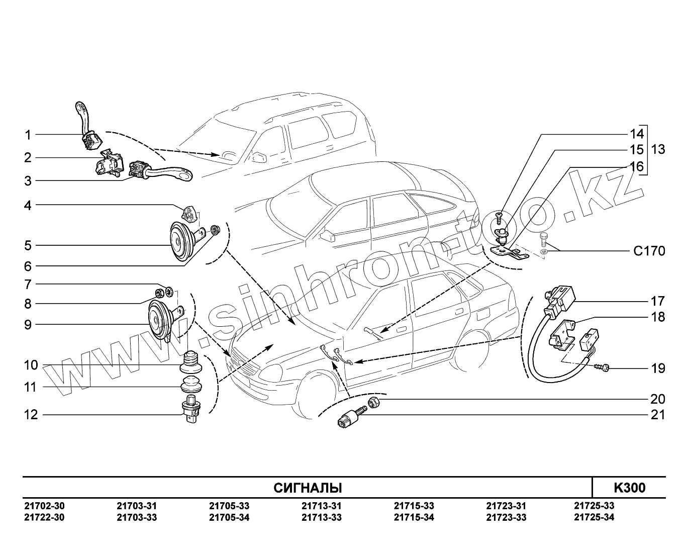 Каталог запасных частей к технике: ВАЗ LADA Priora FL (ВАЗ-2170). K300. Сигналы