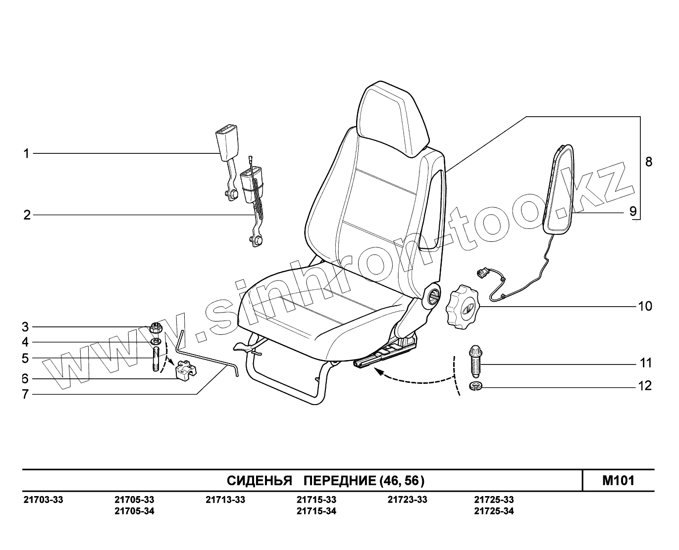 Каталог запасных частей к технике: ВАЗ LADA Priora FL (ВАЗ-2170). M101. Сиденья передние