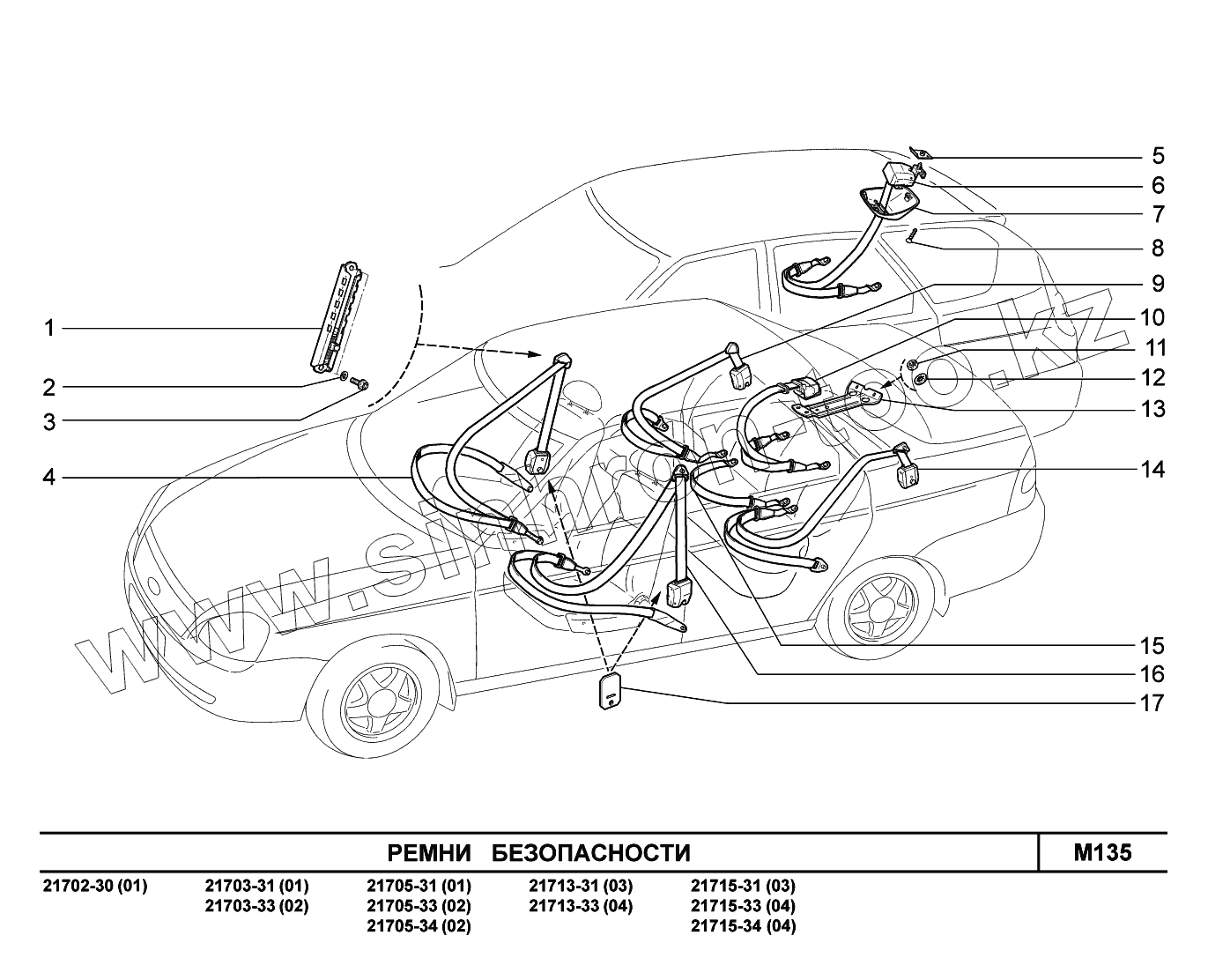 Каталог запасных частей к технике: ВАЗ LADA Priora FL (ВАЗ-2170). M135. Ремни безопасности