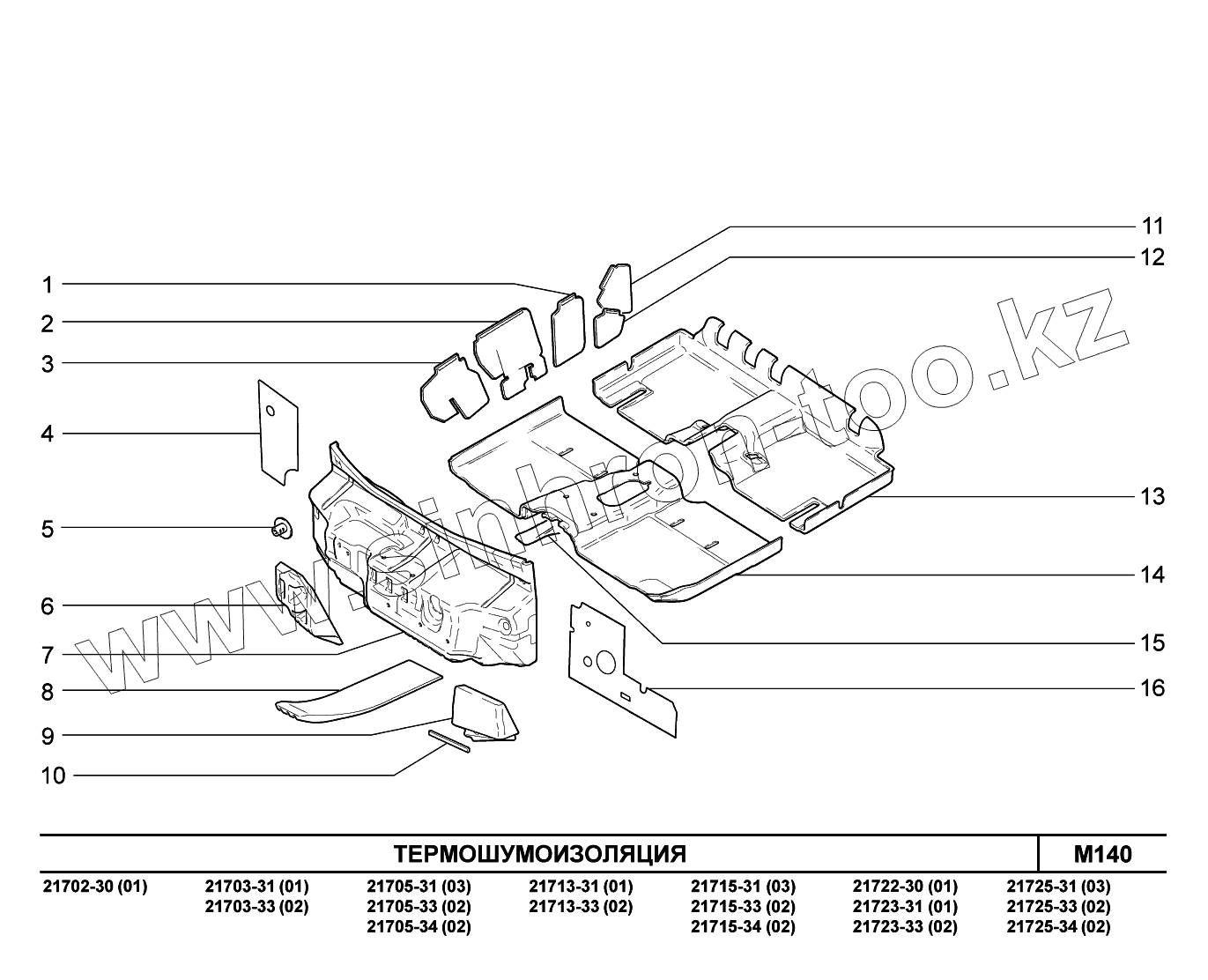 Каталог запасных частей к технике: ВАЗ LADA Priora FL (ВАЗ-2170). M140. Термошумоизоляция