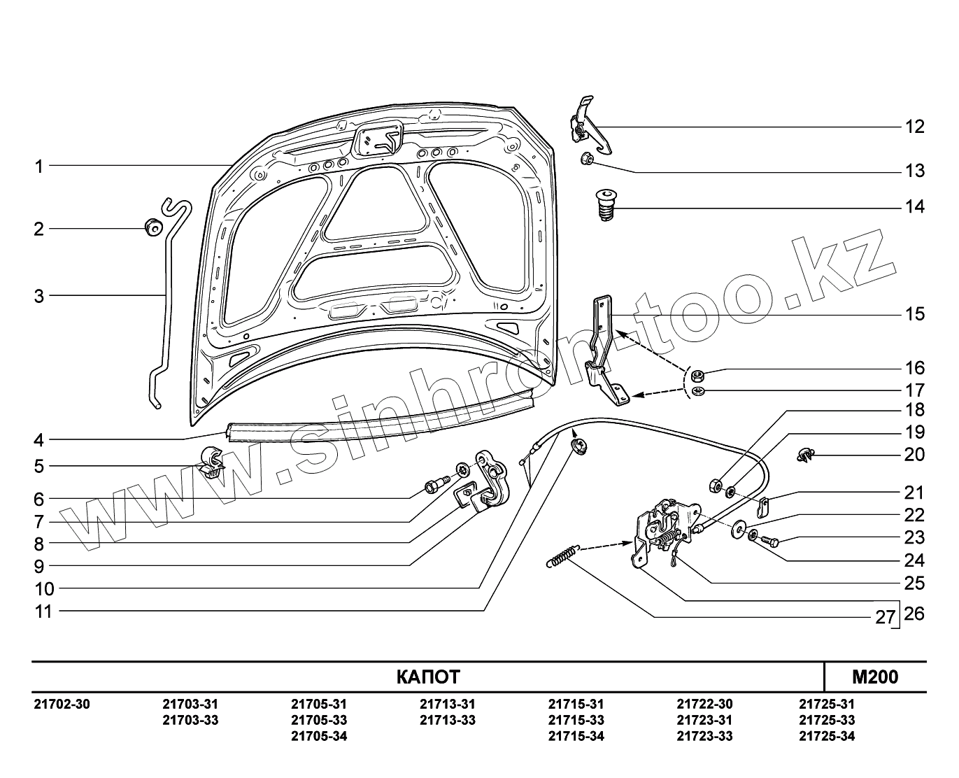 Каталог запасных частей к технике: ВАЗ LADA Priora FL (ВАЗ-2170). M200. Капот