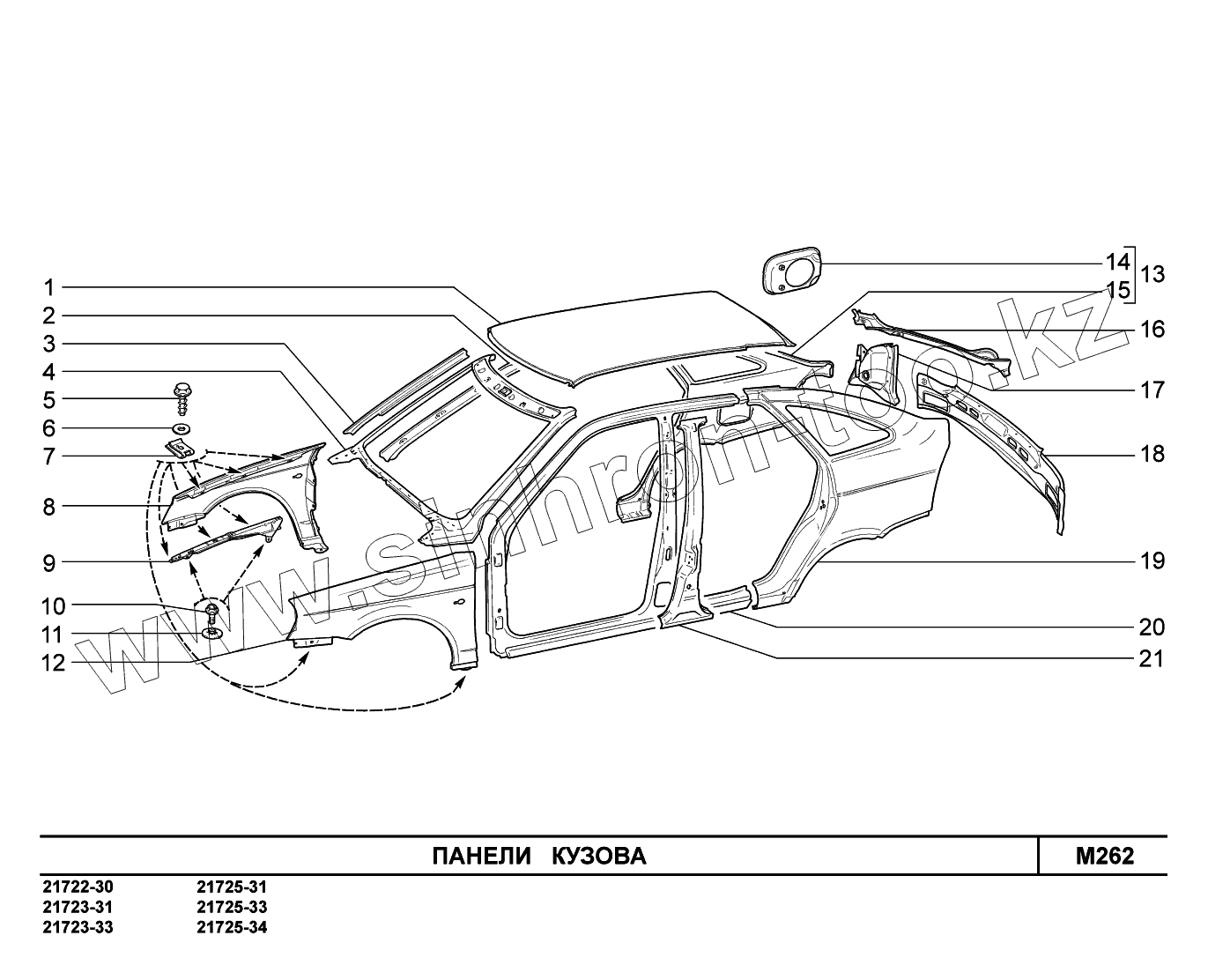 Каталог запасных частей к технике: ВАЗ LADA Priora FL (ВАЗ-2170). M262. Панели кузова