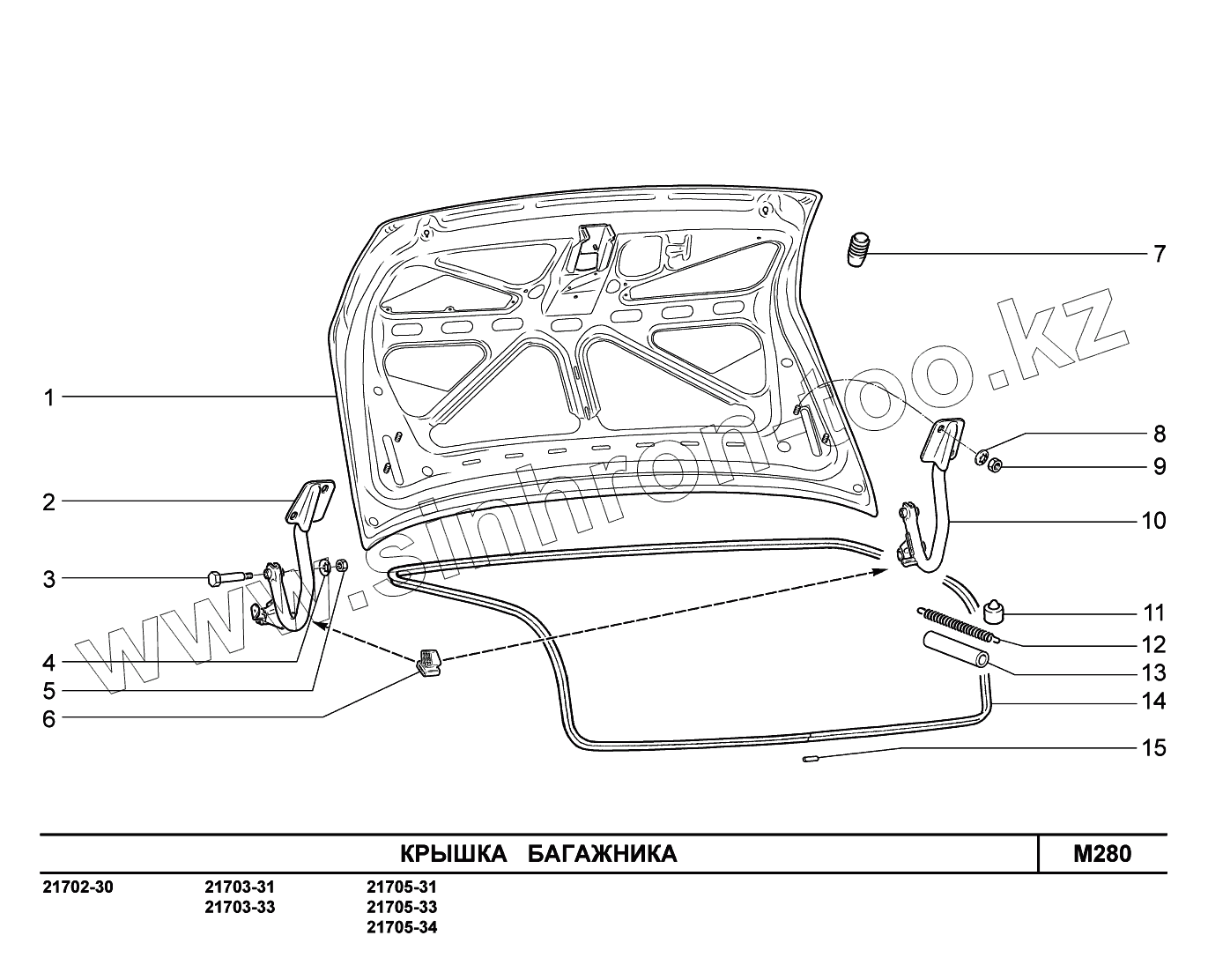 Каталог запасных частей к технике: ВАЗ LADA Priora FL (ВАЗ-2170). M280. Крышка багажника