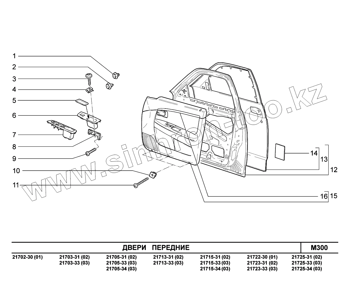 Каталог запасных частей к технике: ВАЗ LADA Priora FL (ВАЗ-2170). M300. Двери передние