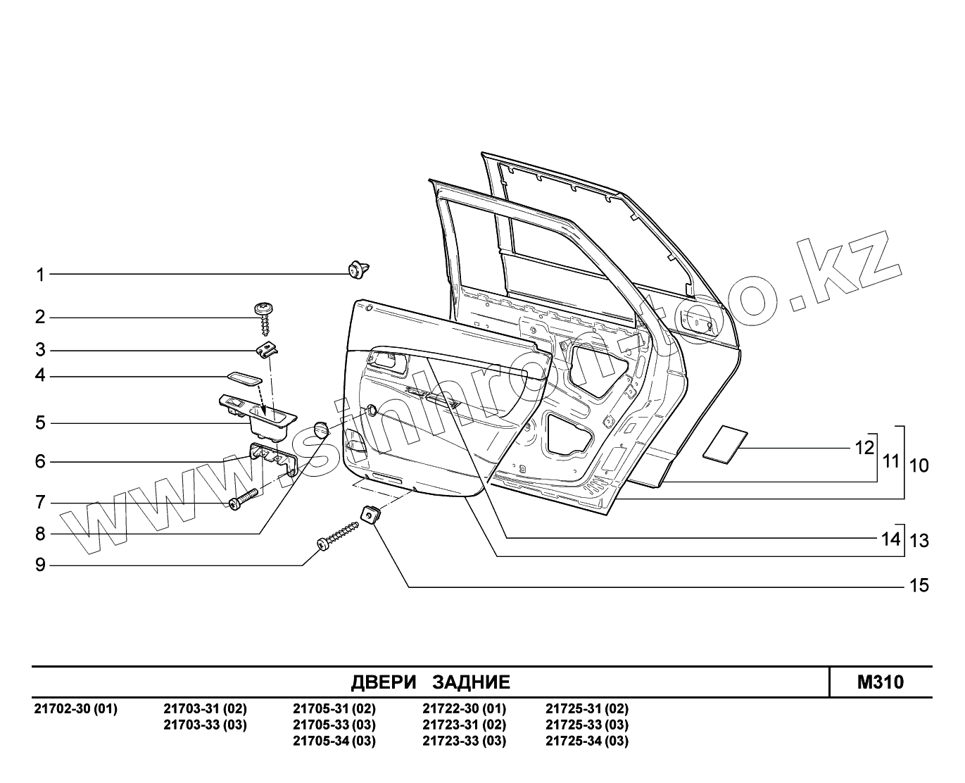 Каталог запасных частей к технике: ВАЗ LADA Priora FL (ВАЗ-2170). M310. Двери задние