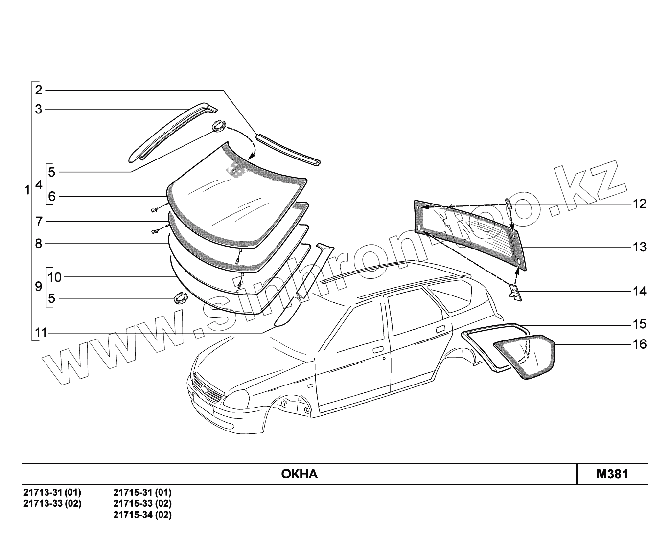 Каталог запасных частей к технике: ВАЗ LADA Priora FL (ВАЗ-2170). M381. Окна