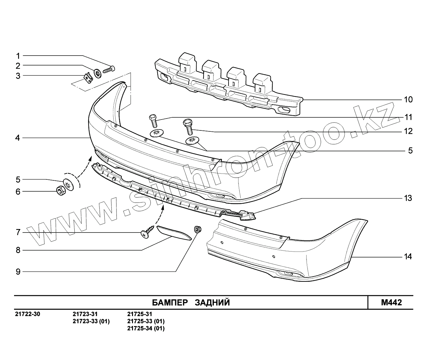 Каталог запасных частей к технике: ВАЗ LADA Priora FL (ВАЗ-2170). M442. Бампер задний