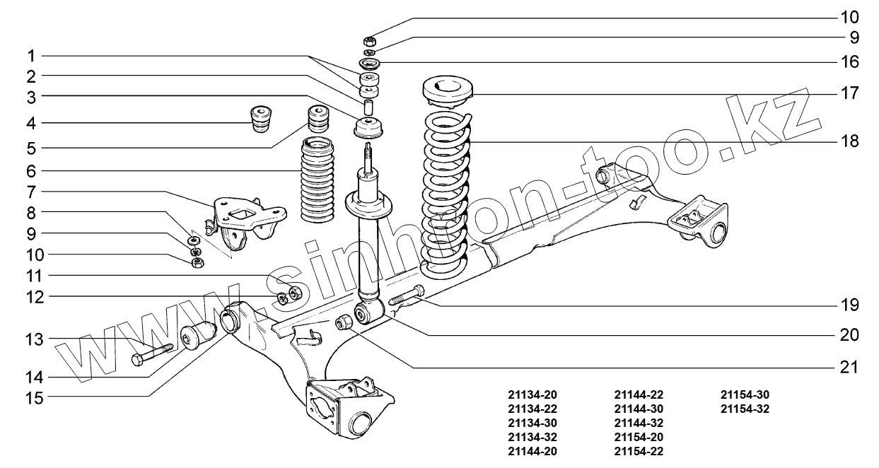 Каталог запасных частей к технике: ВАЗ LADA SAMARA 2113. Подвеска задняя;Rear suspension