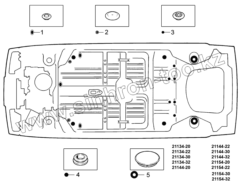Каталог запасных частей к технике: ВАЗ LADA SAMARA 2113. Схема установки заглушек;Plug Layout