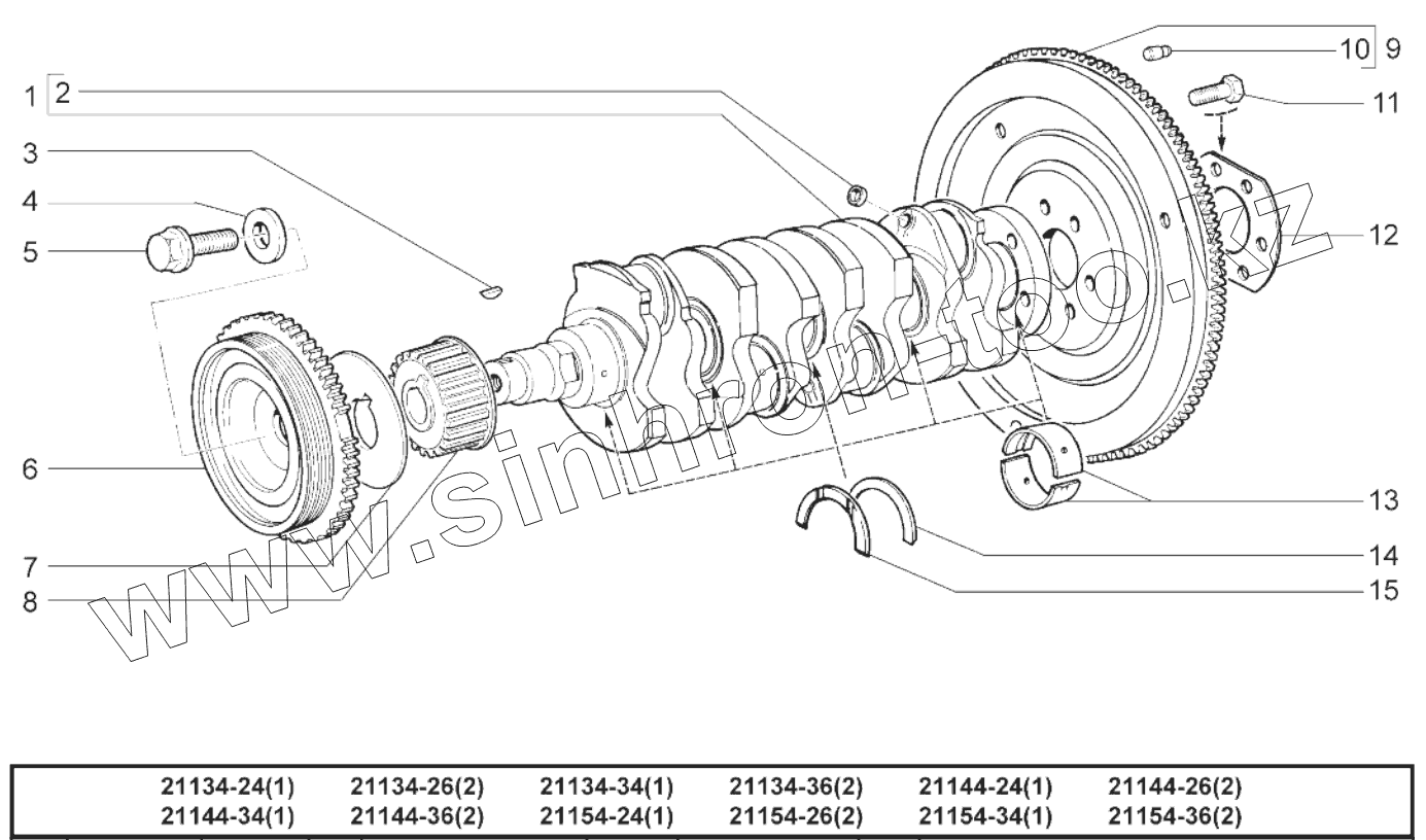 Каталог запасных частей к технике: ВАЗ LADA SAMARA 2113 доп.. Вал коленчатый и маховик