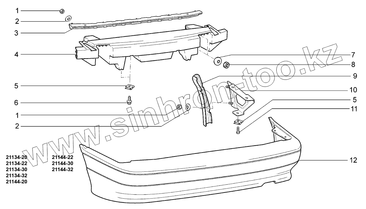Каталог запасных частей к технике: ВАЗ LADA SAMARA 2114. Бампер задний;Rear bumper