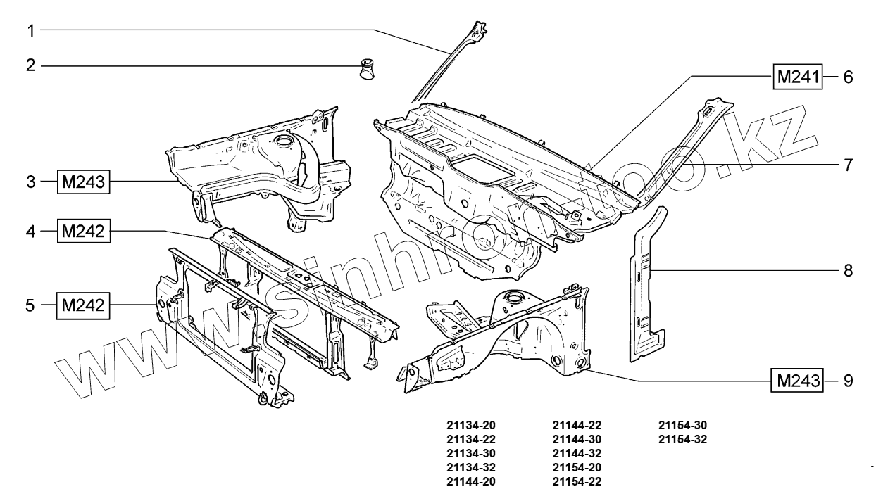Каталог запасных частей к технике: ВАЗ LADA SAMARA 2114. Каркас передка;Body front frame