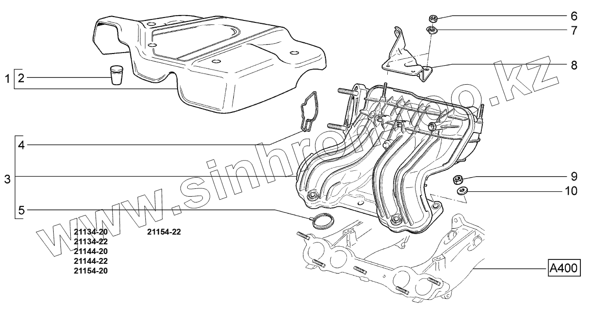 Каталог запасных частей к технике: ВАЗ LADA SAMARA 2114. Модуль впуска;Intake module