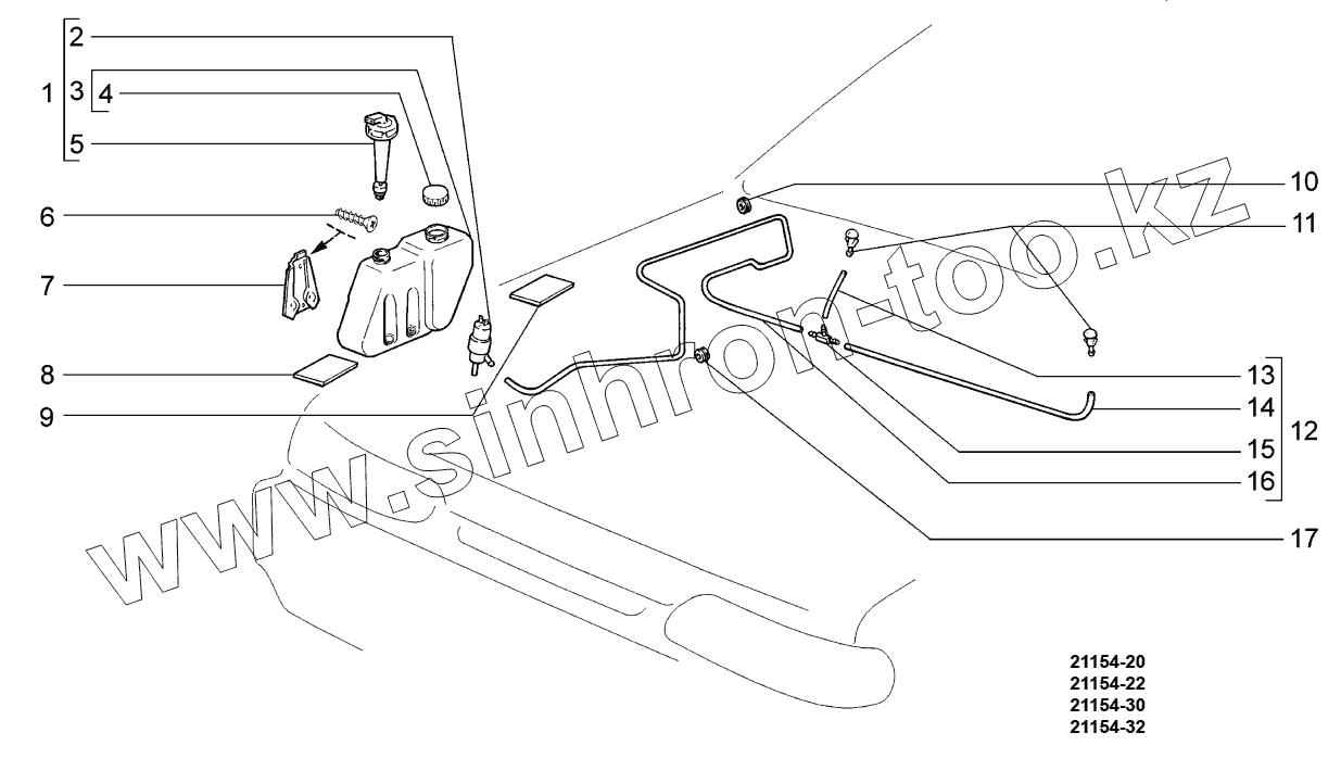 Каталог запасных частей к технике: ВАЗ LADA SAMARA 2114. Омыватель;Washer
