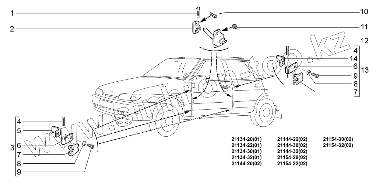 Каталог запасных частей к технике: ВАЗ LADA SAMARA 2114. Петли дверей;Door hinges