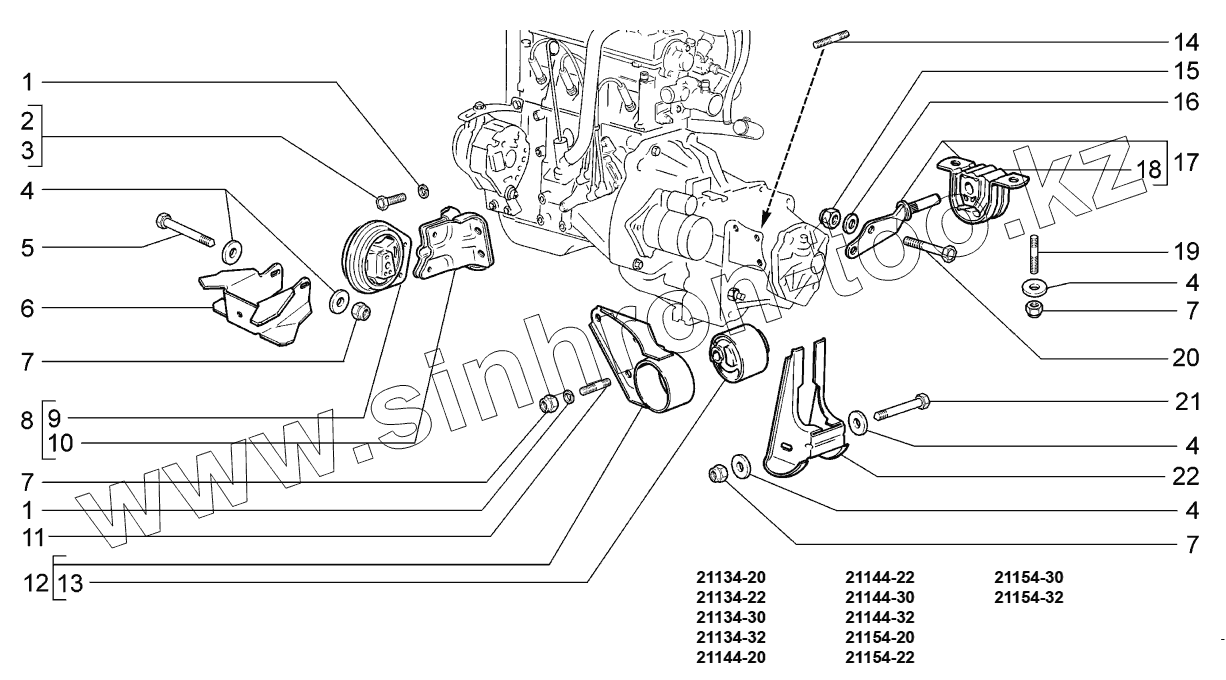 Каталог запасных частей к технике: ВАЗ LADA SAMARA 2114. Подвеска двигателя;Engine mounting