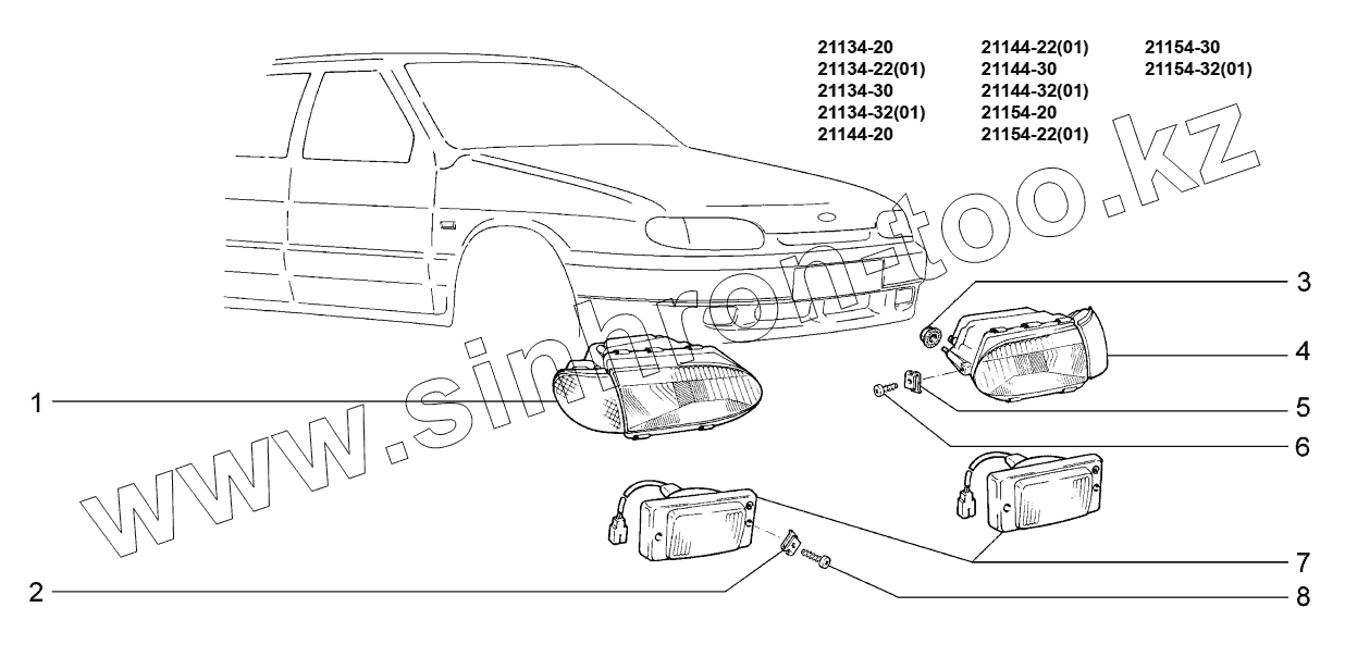 Каталог запасных частей к технике: ВАЗ LADA SAMARA 2114. Приборы световые передние;Headlights