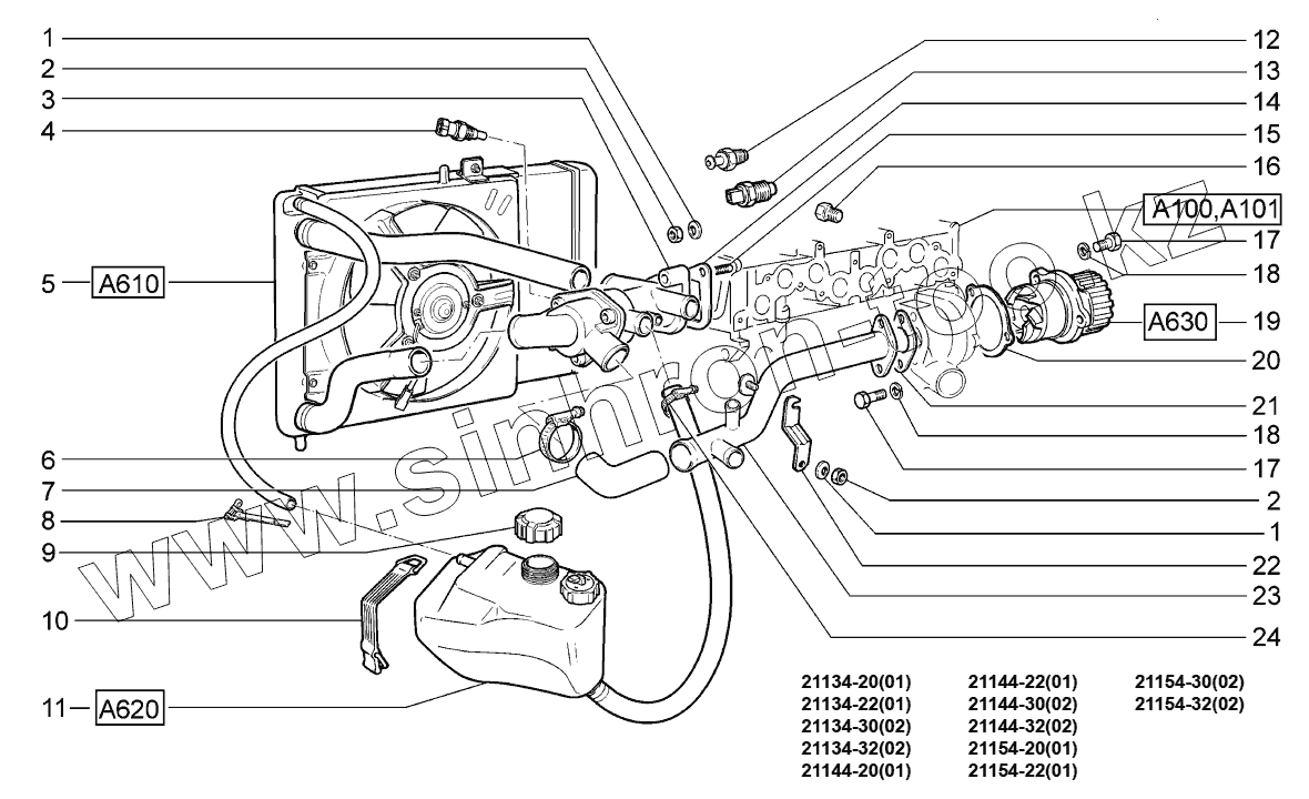 Каталог запасных частей к технике: ВАЗ LADA SAMARA 2114. Система охлаждения;Cooling system