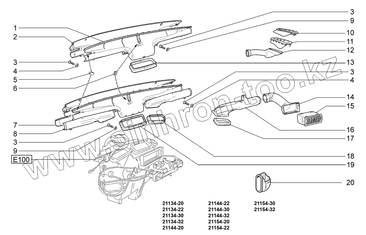 Каталог запасных частей к технике: ВАЗ LADA SAMARA 2114. Воздухопроводы отопителя;Heater airducts