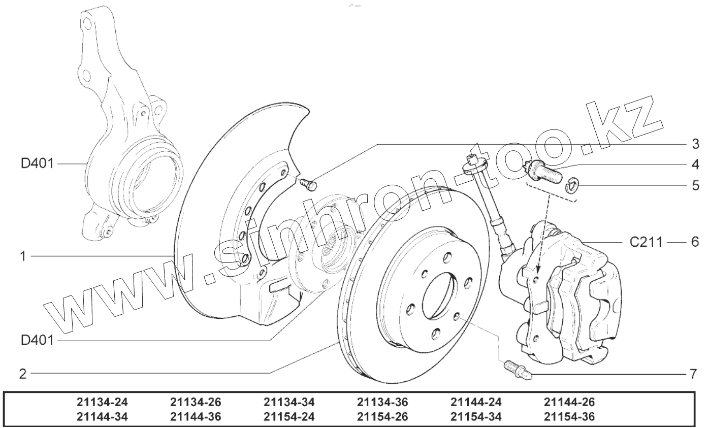 Каталог запасных частей к технике: ВАЗ LADA SAMARA 2114 доп.. Тормоза передние