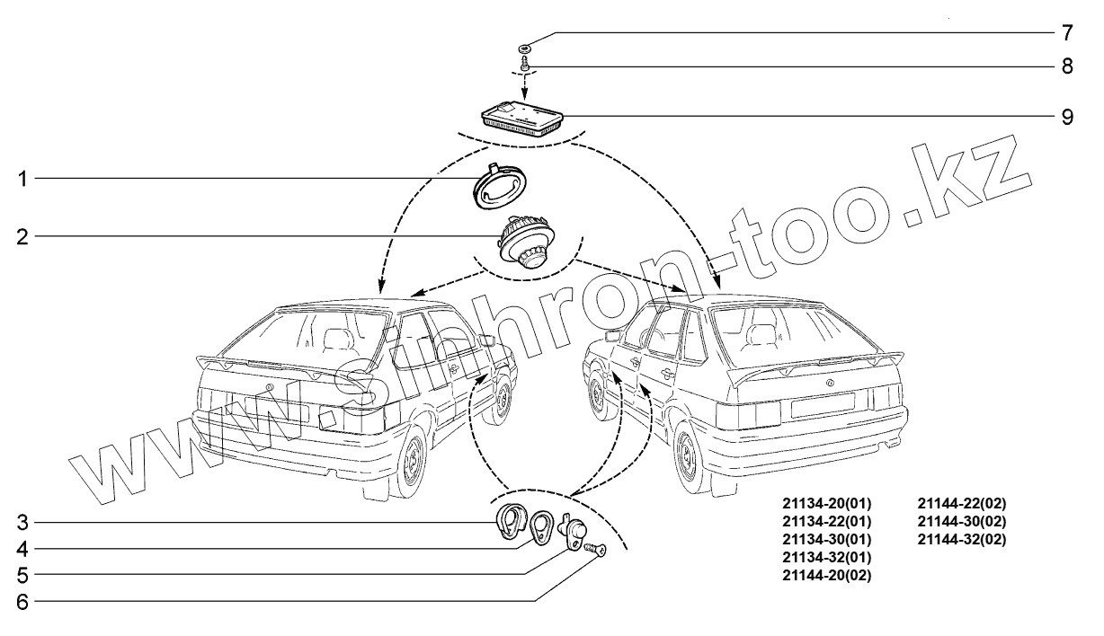 Каталог запасных частей к технике: ВАЗ LADA SAMARA 2115. Освещение салона;Interior lighting