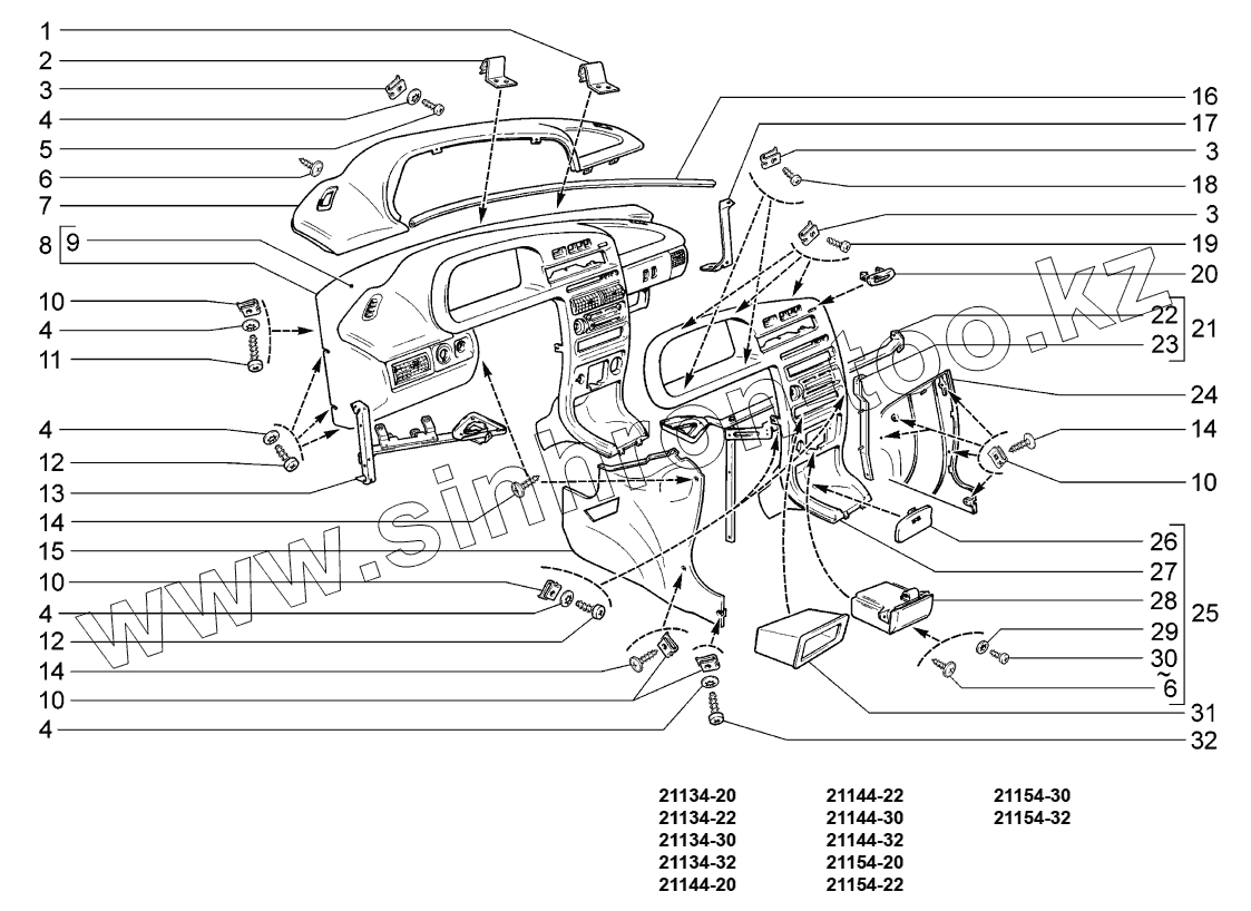 Каталог запасных частей к технике: ВАЗ LADA SAMARA 2115. Панель приборов;Instrument panel