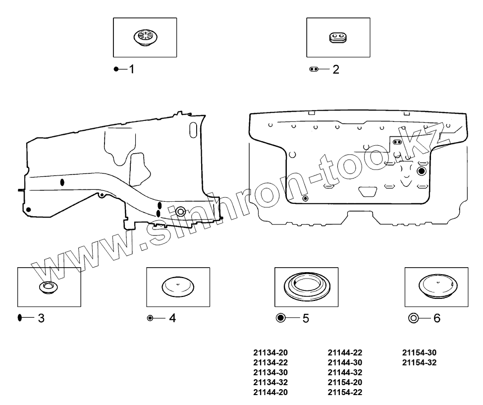 Каталог запасных частей к технике: ВАЗ LADA SAMARA 2115. Схема установки заглушек;Plug Layout