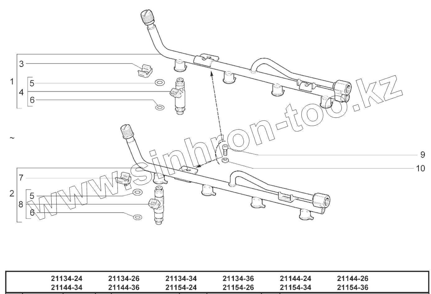 Каталог запасных частей к технике: ВАЗ LADA SAMARA 2115 доп.. Рампа и форсунки