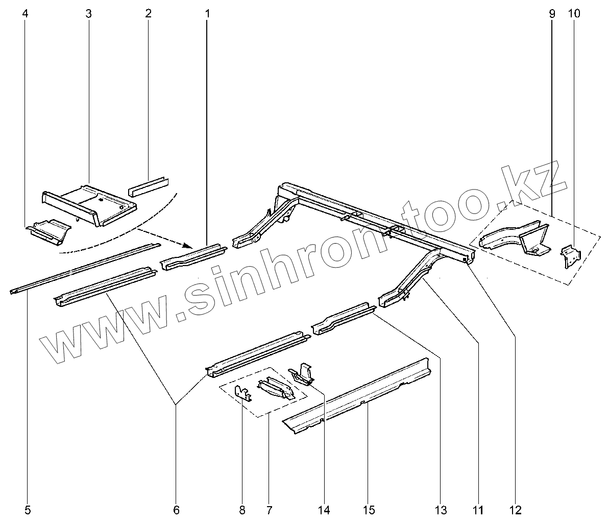 Поперечина пола задняя с лонжеронами в сборе