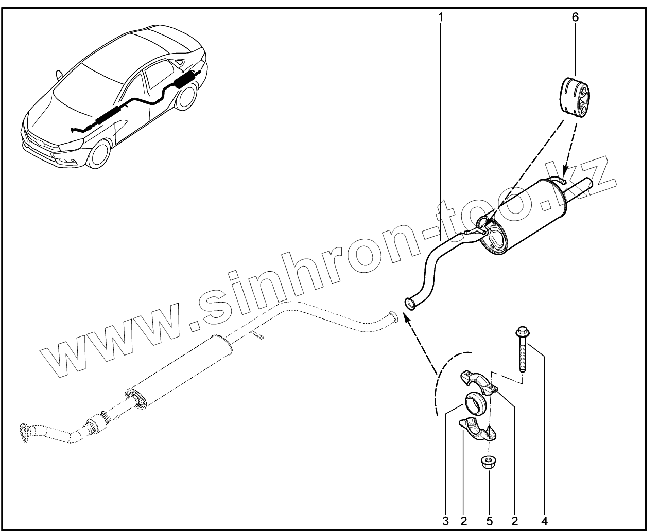 Каталог запасных частей к технике: ВАЗ LADA Vesta. 196010. Глушитель