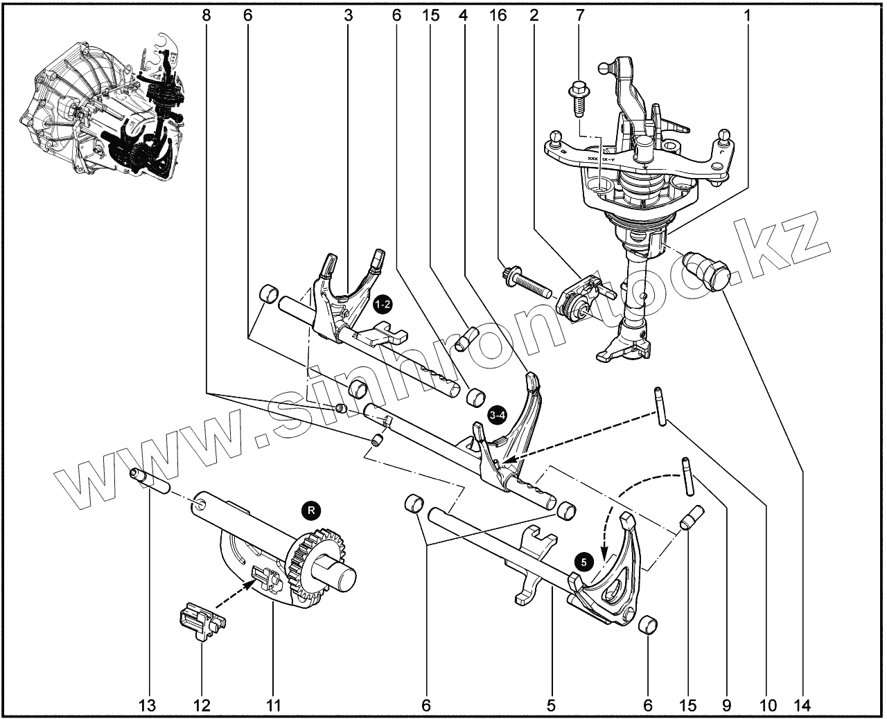 ФИКСАТОР ШТОКОВ ПЕРЕКЛЮЧЕНИЯ ПЕРЕДАЧ В СБОРЕ