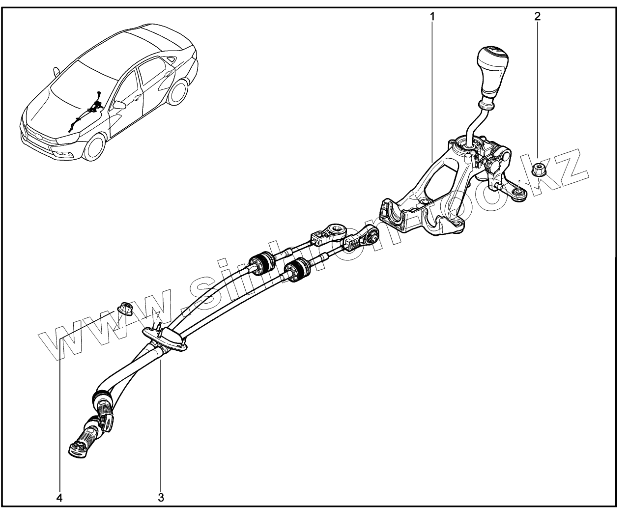 Каталог запасных частей к технике: ВАЗ LADA Vesta. 381010. Привод выбора передач КПП