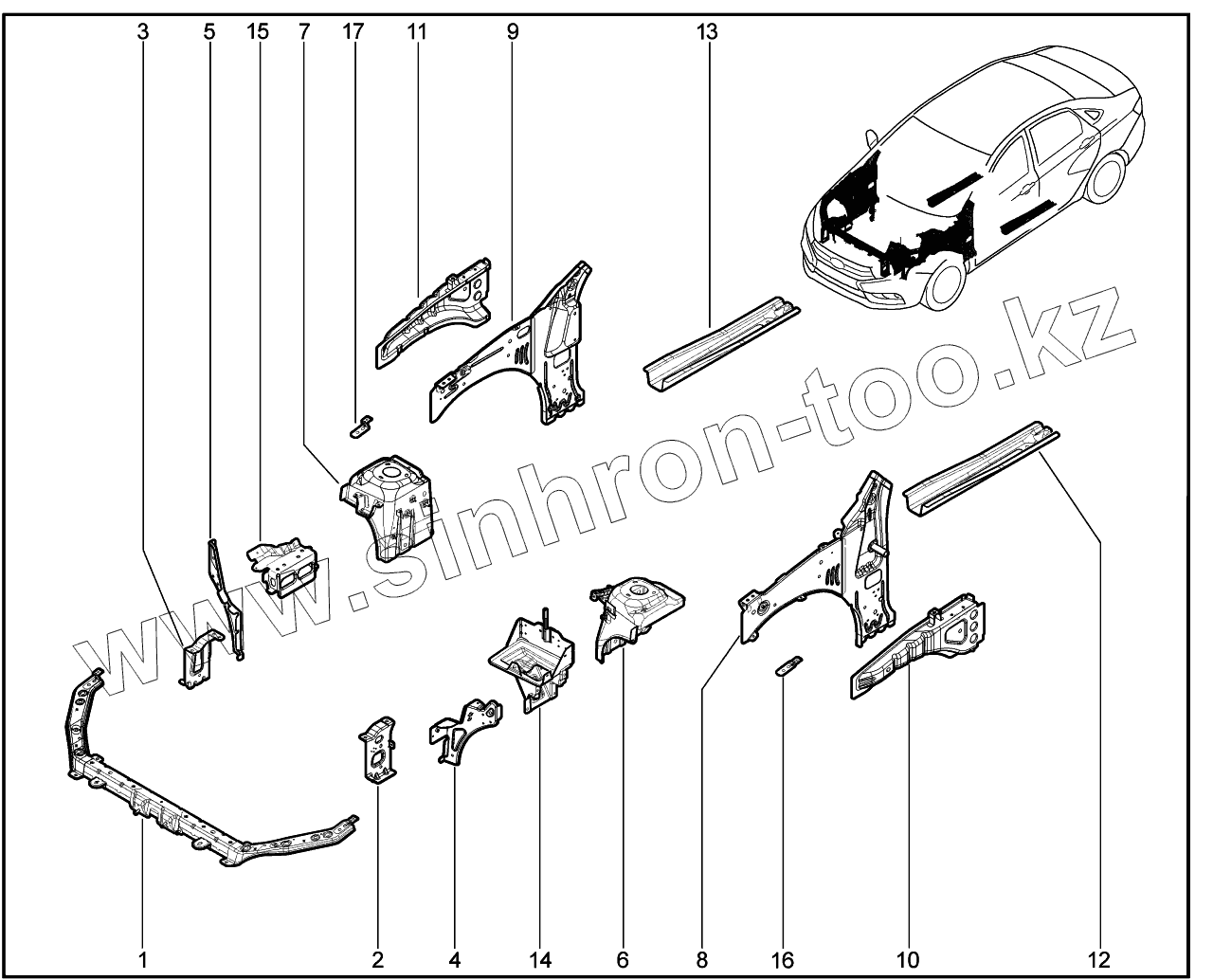 Каталог запасных частей к технике: ВАЗ LADA Vesta. 420110. Элементы (перед, боковина)