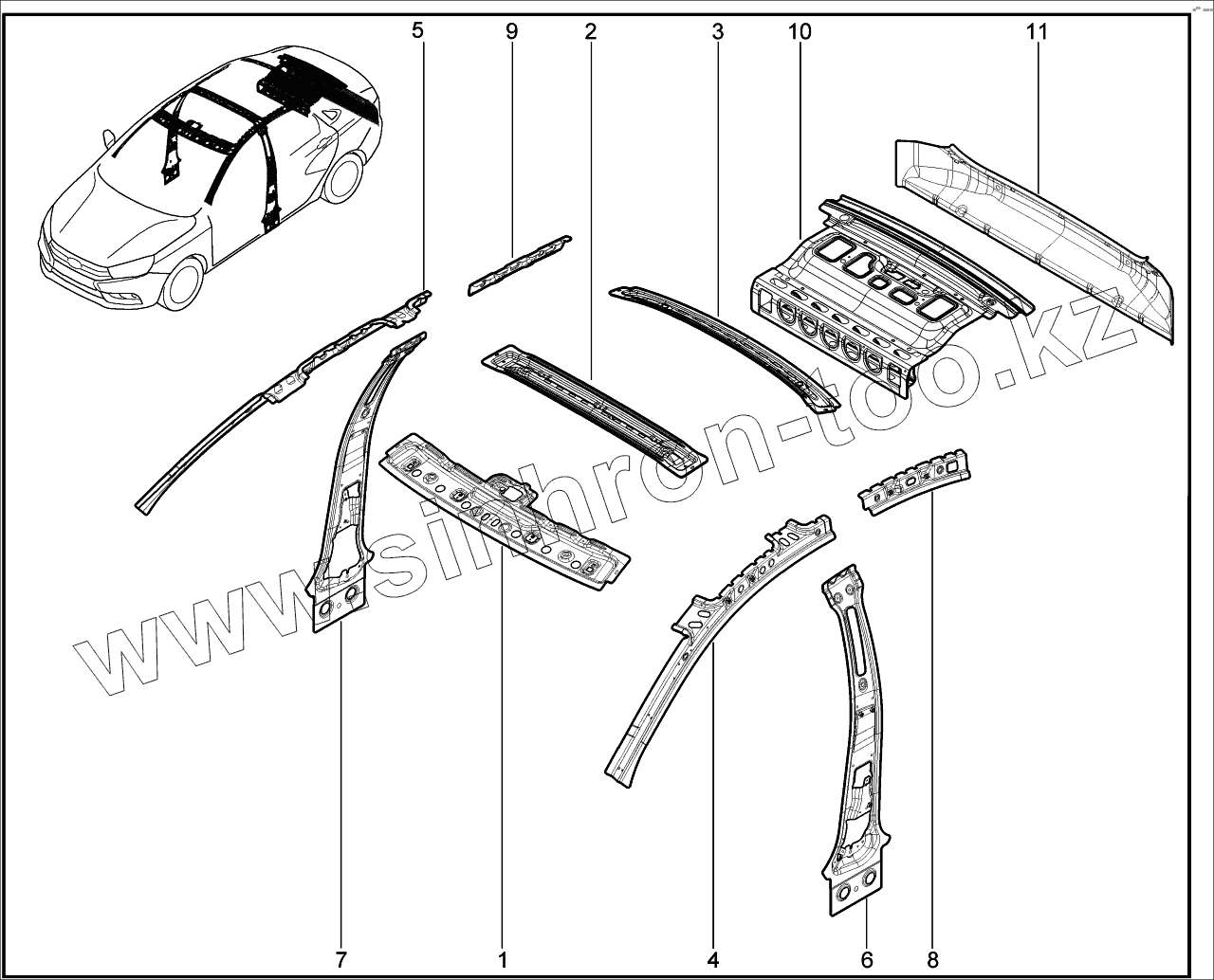 Каталог запасных частей к технике: ВАЗ LADA Vesta. 431110. Облицовка, поперечины
