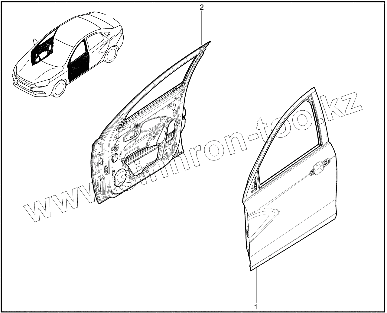 Каталог запасных частей к технике: ВАЗ LADA Vesta. 470110. Двери передние