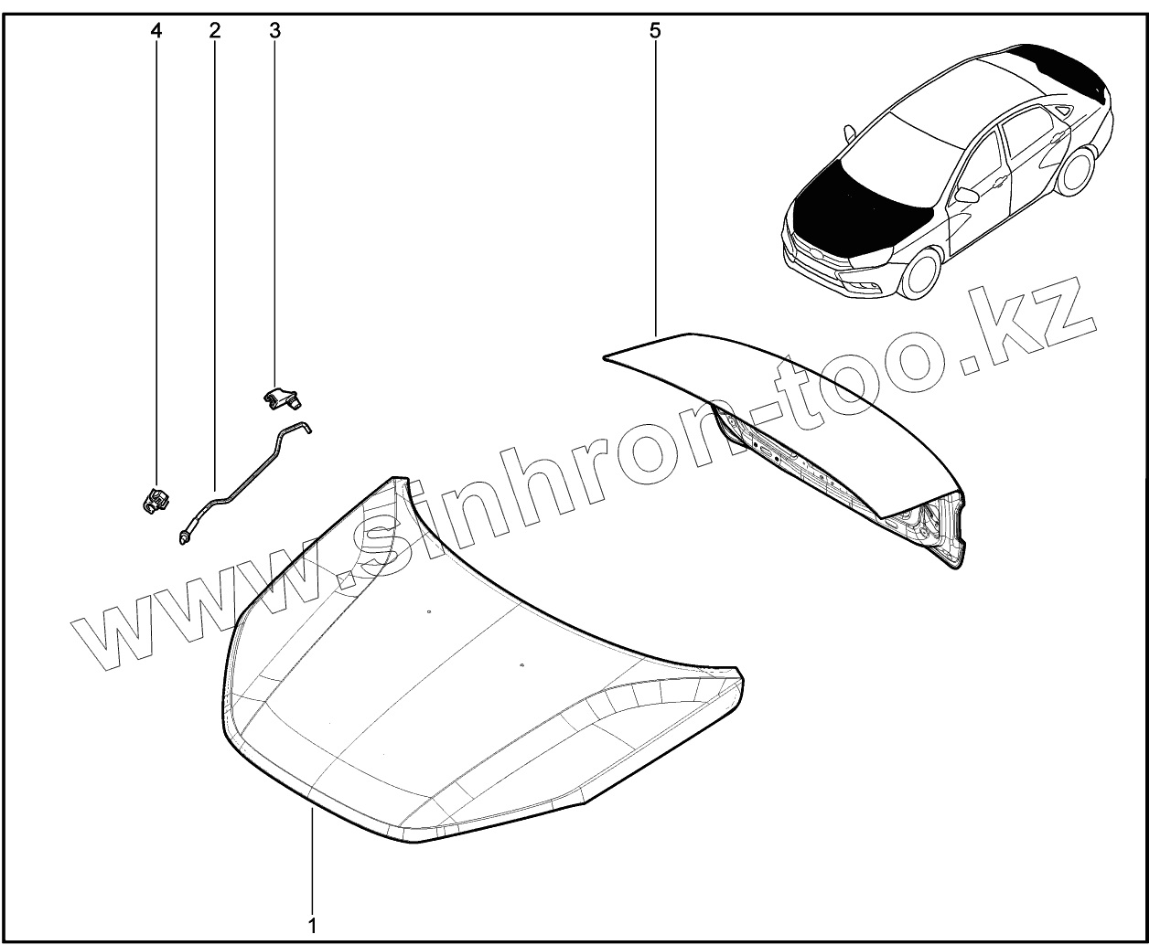 Каталог запасных частей к технике: ВАЗ LADA Vesta. 480110. Капот, двери задние