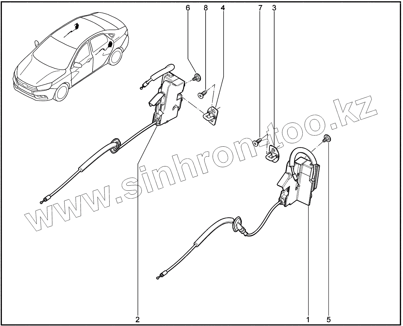 Каталог запасных частей к технике: ВАЗ LADA Vesta. 502010. Замки задних дверей