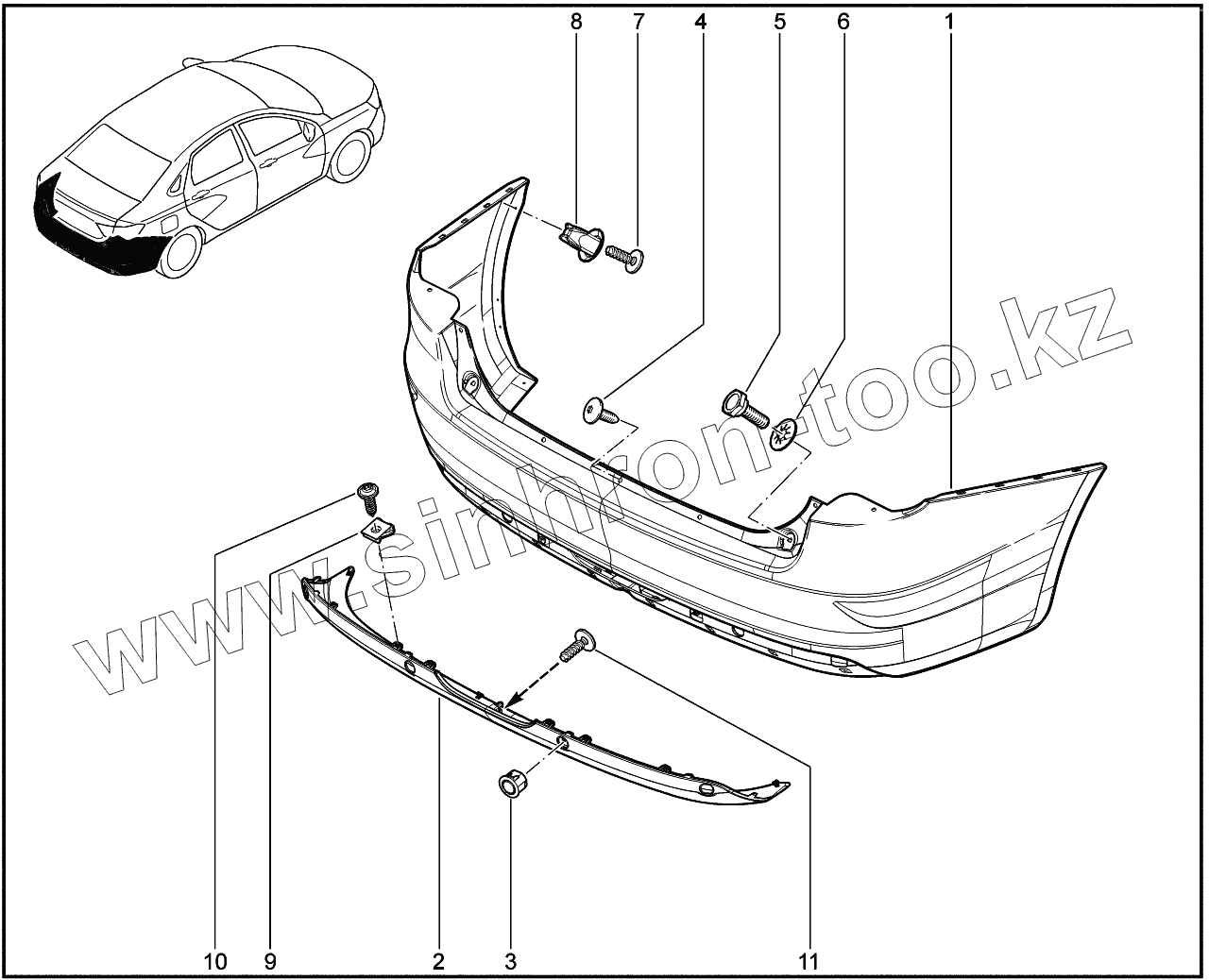 Каталог запасных частей к технике: ВАЗ LADA Vesta. 551010. Бампер задний