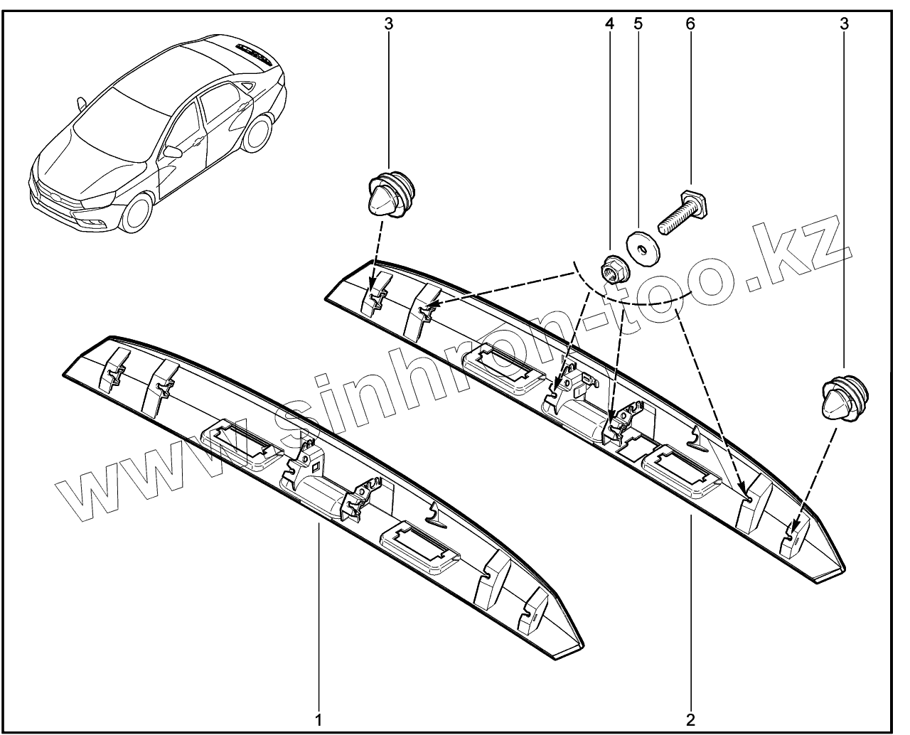 Каталог запасных частей к технике: ВАЗ LADA Vesta. 552012. Накладки задней двери