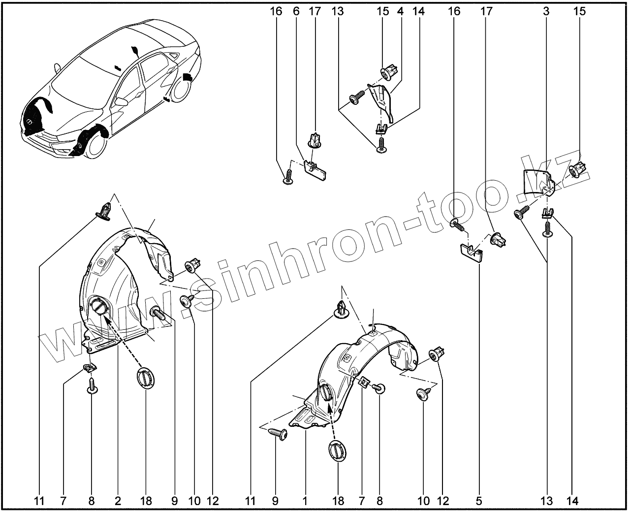 Каталог запасных частей к технике: ВАЗ LADA Vesta. 564010. Щитки арок колёс