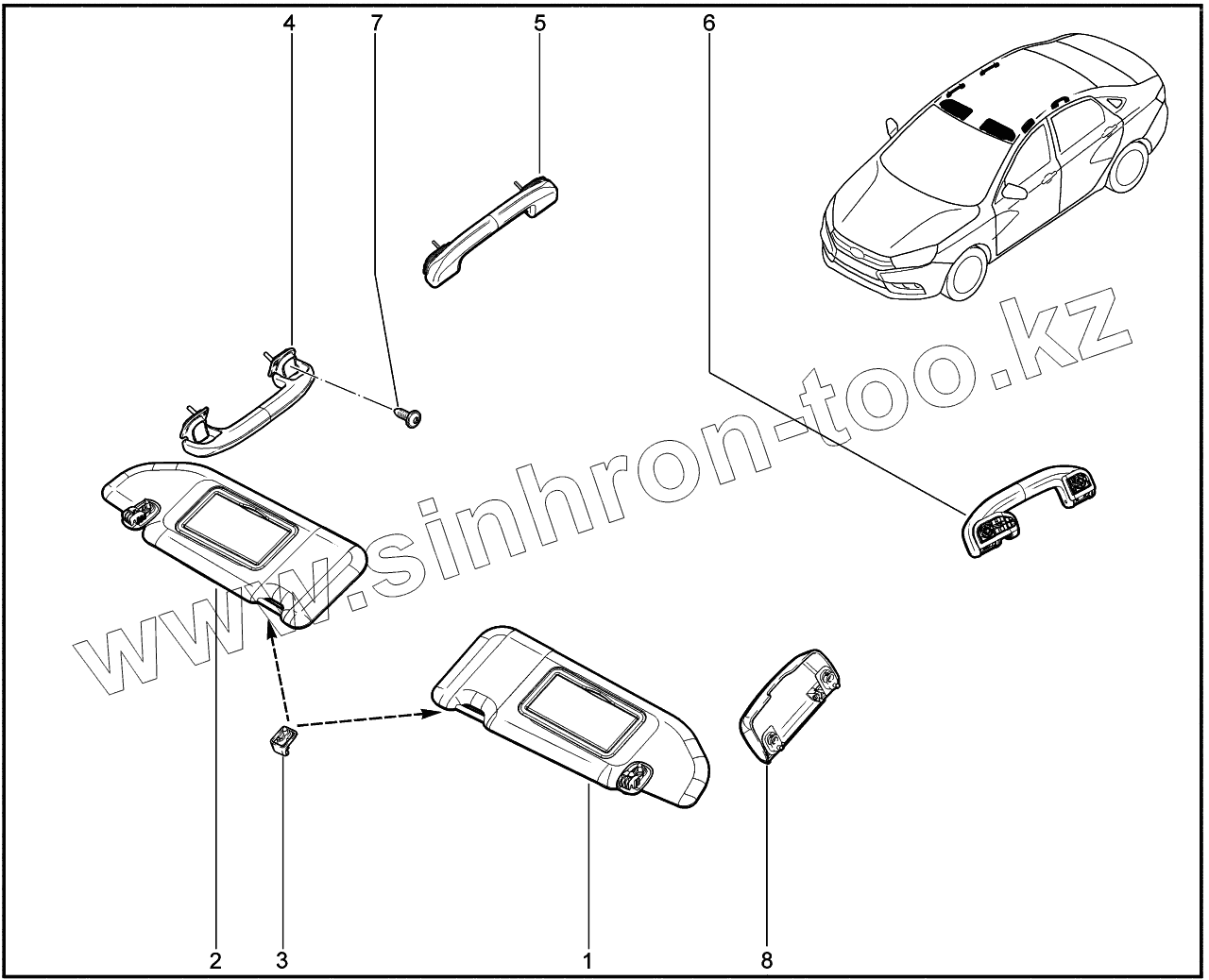 Каталог запасных частей к технике: ВАЗ LADA Vesta. 584012. Поручни, козырьки, крючки