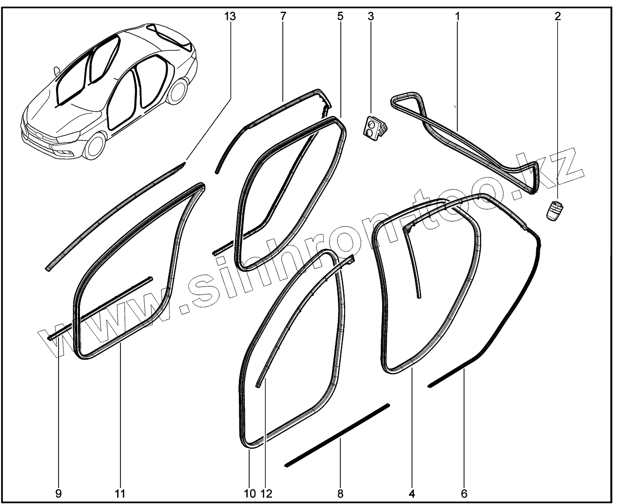 Каталог запасных частей к технике: ВАЗ LADA Vesta. 650120. Уплотнители стёкол