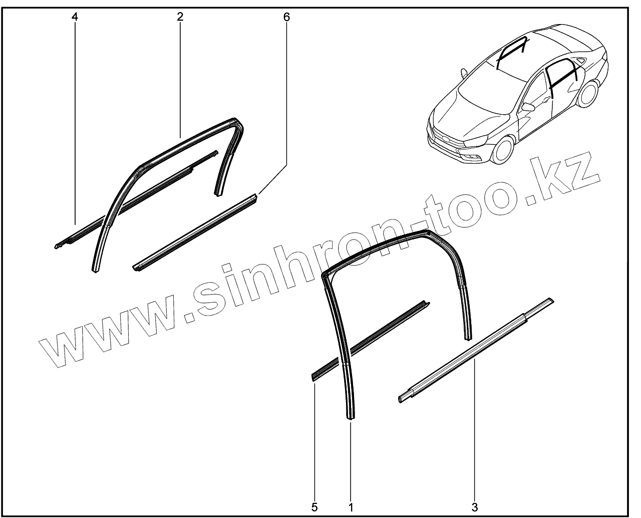 Каталог запасных частей к технике: ВАЗ LADA Vesta. 660150. Направляющие задних стёкол
