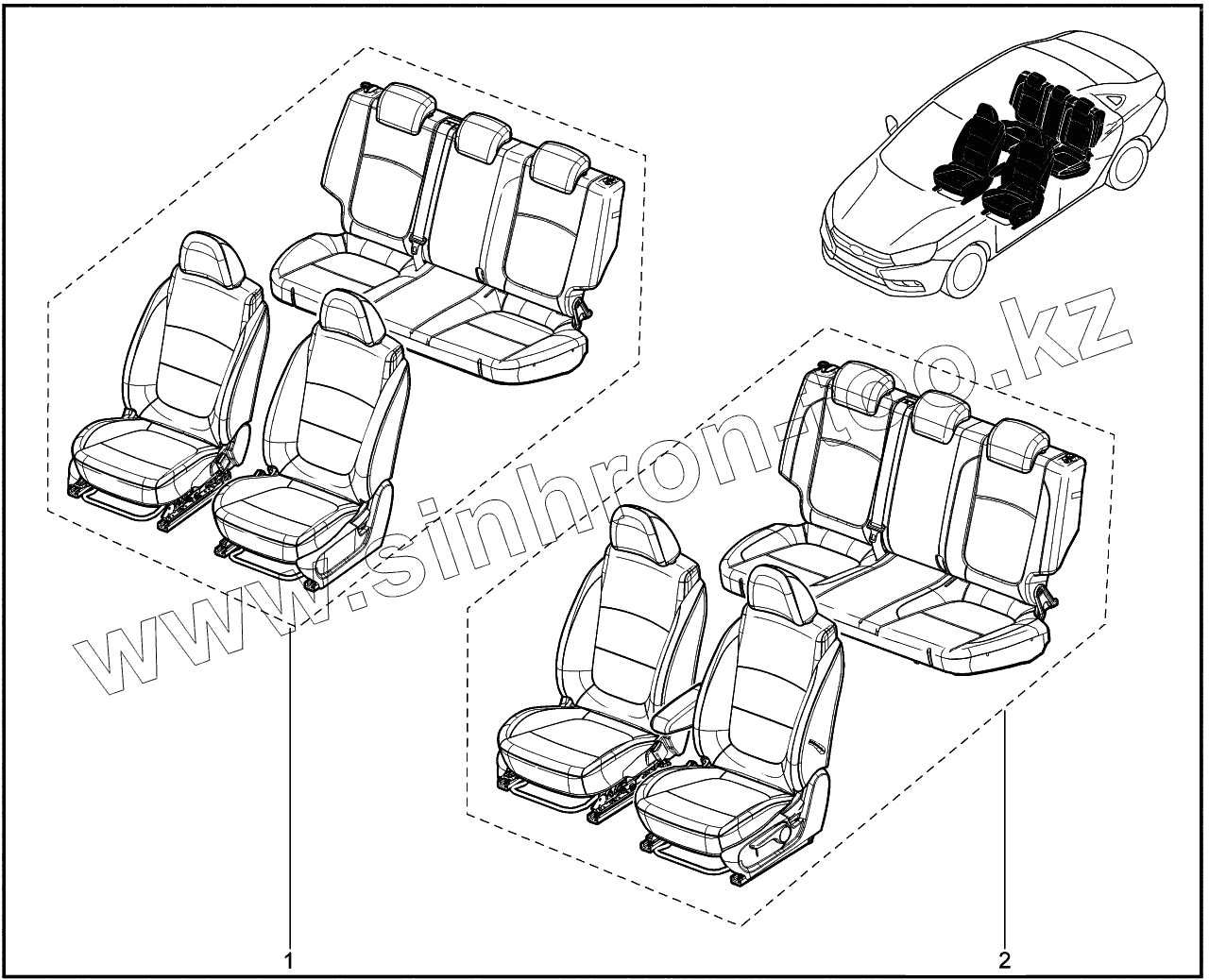 Каталог запасных частей к технике: ВАЗ LADA Vesta. 750030. Сиденья комплект поставки