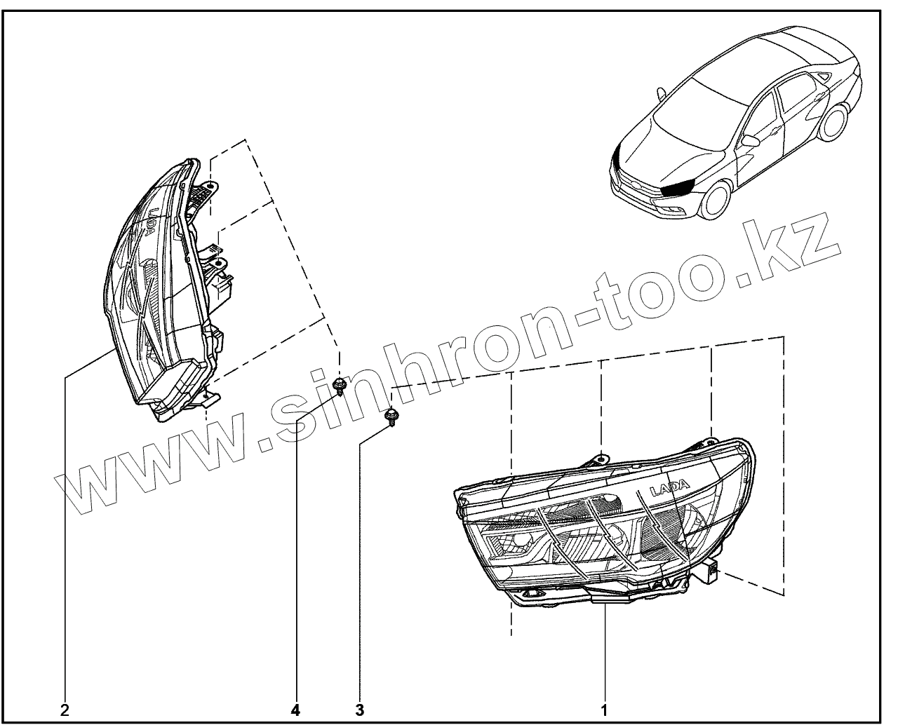 Каталог запасных частей к технике: ВАЗ LADA Vesta. 802010. Фары передние