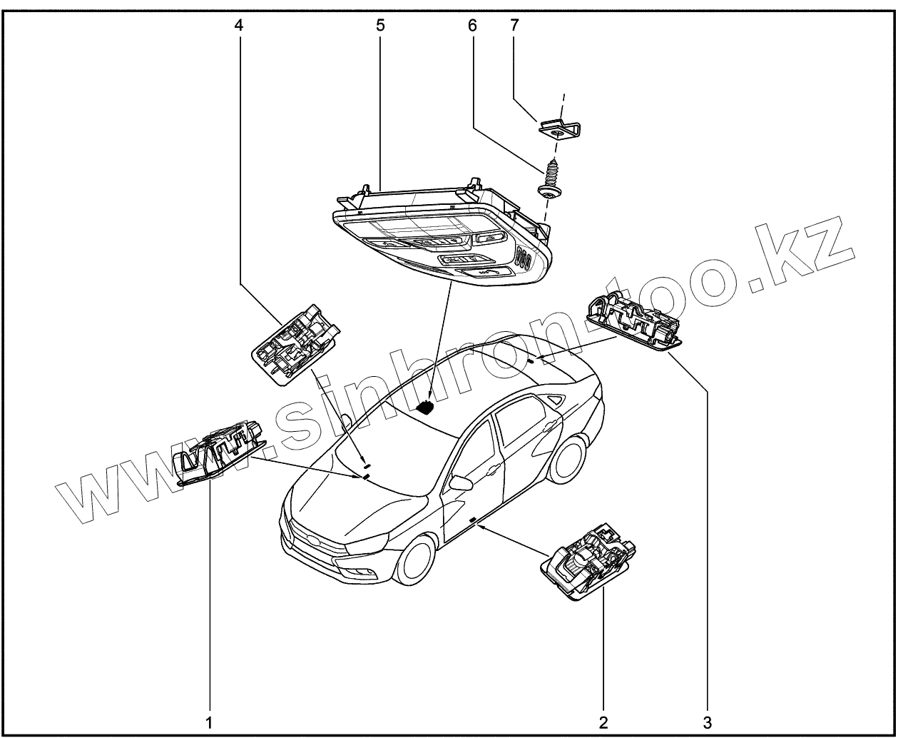 Каталог запасных частей к технике: ВАЗ LADA Vesta. 814011. Салонное освещение