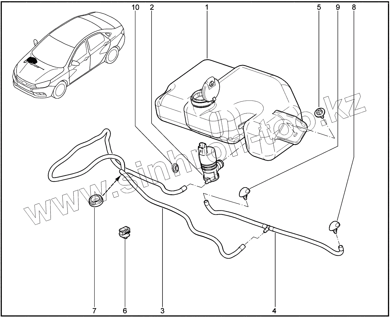 Каталог запасных частей к технике: ВАЗ LADA Vesta. 860110. Омыватель передних стекол