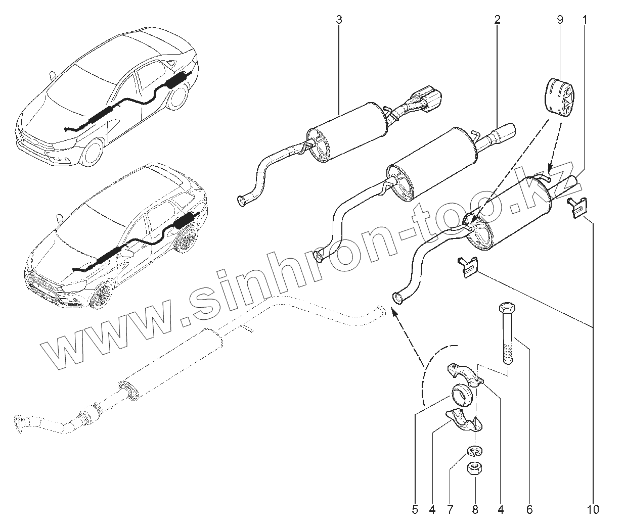 Глушитель основной с трубами и кронштейнами и насадком в сборе