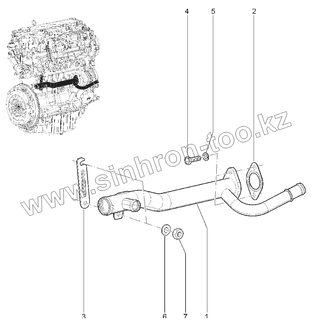 Труба подводящая водяного насоса в сборе