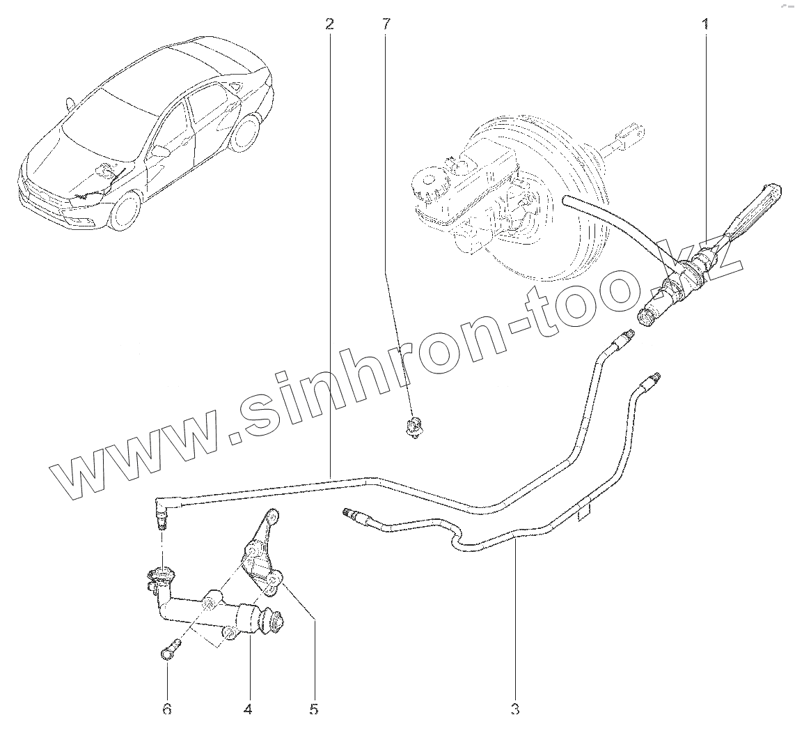 Каталог запасных частей к технике: ВАЗ LADA Vesta. 372510. ПРИВОД СЦЕПЛЕНИЯ (ГИДРАВЛИЧЕСКИЙ)